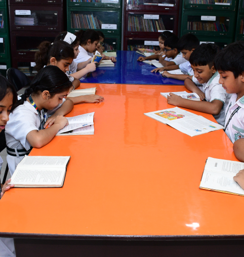 The primary section, dedicated to younger students, is filled with colorful picture books, early readers, and interactive materials that foster a love for reading and basic research skills.